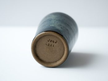 Wheel thrown soda fired mug with handle. UNL glaze.