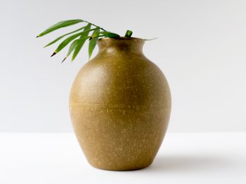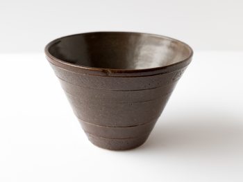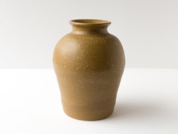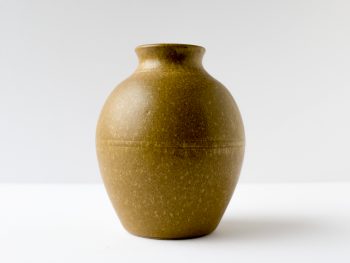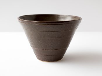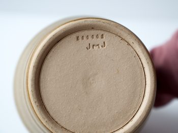 Vase wheel thrown in 2004. Brown glaze with striped design . Felt pads on bottom.